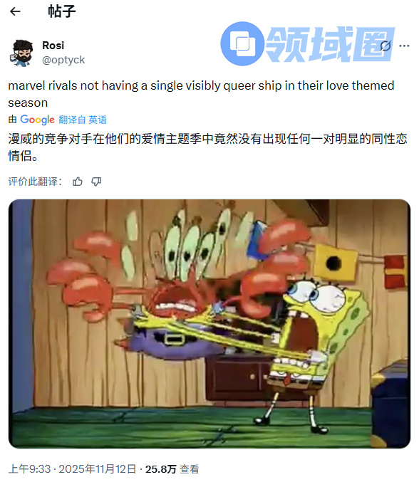 目前,《漫威争锋》中尚无实际LGBTQ+情侣角色。相比同类游戏,如《Apex英雄》和《守望先锋2》,《漫威争锋》在LGBTQ+角色呈现方面被部分玩家认为相对有限。