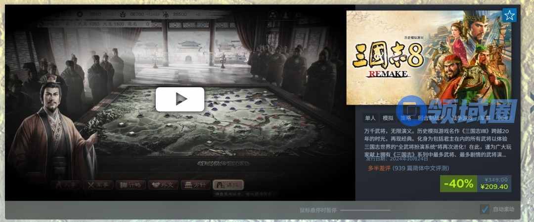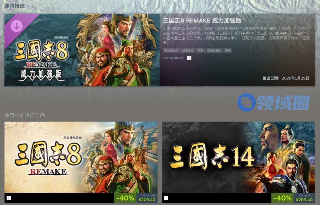 此外,光荣还宣布历史模拟游戏《三国志》系列将于12月10日迎来40周年!以最新作《三国志8:重制版》为首的多款系列作品于Steam/Nintendo eShop以及PlayStation Store开启优惠!
