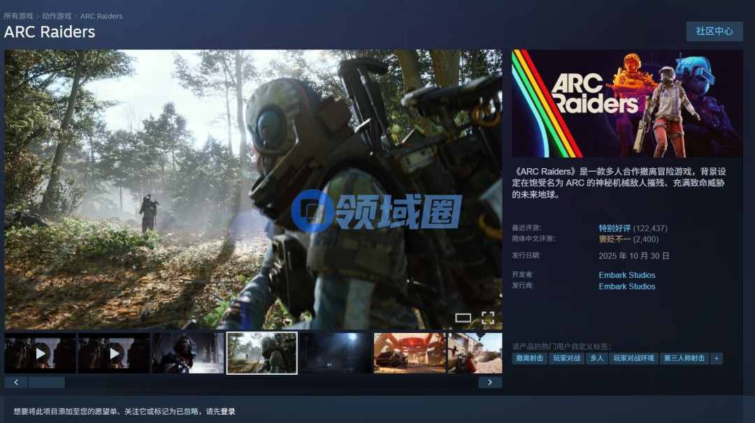 此前,Alinea Analytics报告称,《ARC Raiders》在11月16日至22日这一周售出了近75万份,其中至少一半的销量来自Steam,另一半则来自PS5和Xbox Series X/S主机。