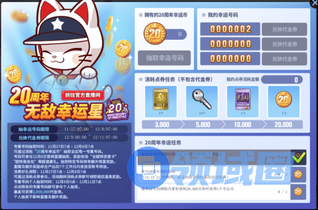 玩家可以通过消耗20周年幸运币抽取全区唯一专属号码,号码可以参与12月8日周年庆福利直播夜抽奖,奖励包括“全超特变更卡全家福”、“超特角色包”等百万豪礼。12月9日起玩家还可以参与个人抽奖,领取最高200万代金券奖励。