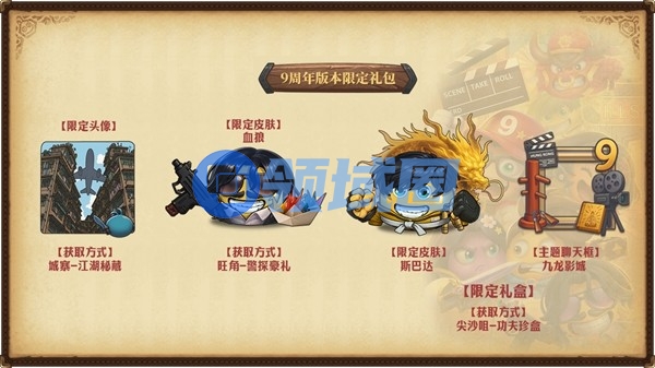 九周年限定礼包来袭!包含限定头像、皮肤和聊天框等物品,可以根据下图获取方式逐一收入囊中!