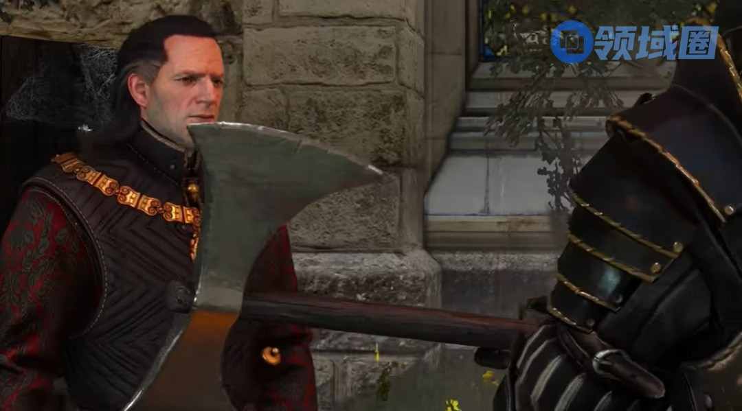 有趣的是,留在树干上的斧头最终还是出现在了最终版的游戏中:在庭院漫步时可以注意到它。然而,若没有上下文,这个元素看起来只是环境中一个随机的细节。根据粉丝们的讨论,这个场景本可以强化恩希尔的独裁者形象,并为他与杰洛特后续的对话设定更紧张的氛围。