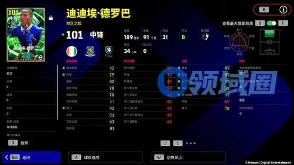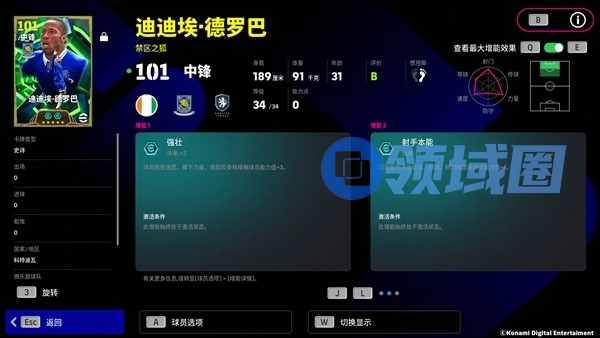 德罗巴的增能属性为【强壮 +3】,速度和身体接触的增强让他合金浇筑的身体在进攻路上碾压一切阻碍!【无定型射门】的特殊技巧,让他即使背对球门,也能在瞬息间拧身爆射入网!他还自带【到位传球】的特殊技巧,他总能送出手术刀般的传球为队友创造杀机!