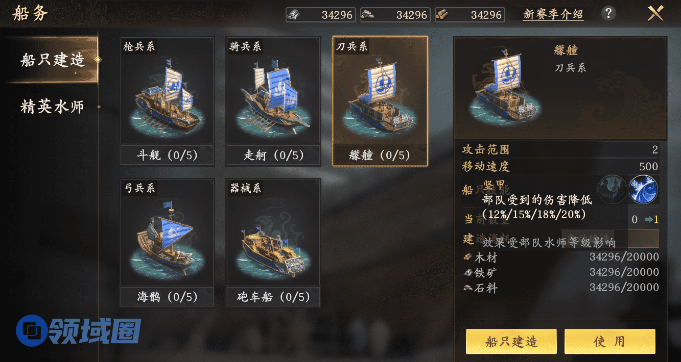 以朝代更加丰富的《王于兴师》为例,其“瀚海牵星”剧本引入的汉唐著名战船,从形制到战力都极为考究:外观高度还原历史,战斗性能也基于史实进行了精细复刻。例如艨艟就对应东汉史书记载的“以生牛皮蒙背”,完美还原了其优异的防御特性。海鹘作为唐代尖底战船,其“虽风浪涨天,无有倾侧”的抗浪性能,转化为了游戏中卓越射击精度。