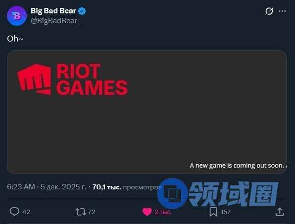 知名爆料者BigBadBear发布了一张疑似Riot Games演示文稿的截图,暗示该公司即将公布新游戏。虽然官方并未对此发表评论,但粉丝已经开始纷纷猜测起来。