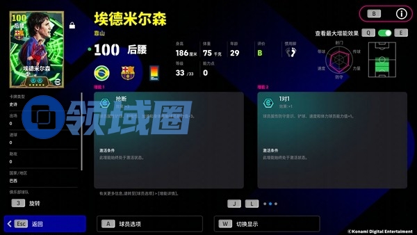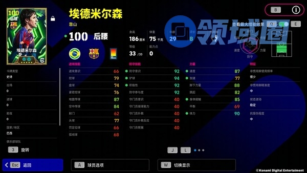 埃德米尔森的比赛风格是【靠山】,配合【后防领袖】的特殊技能,他总能在完成关键拦截后送出清晰的传球。