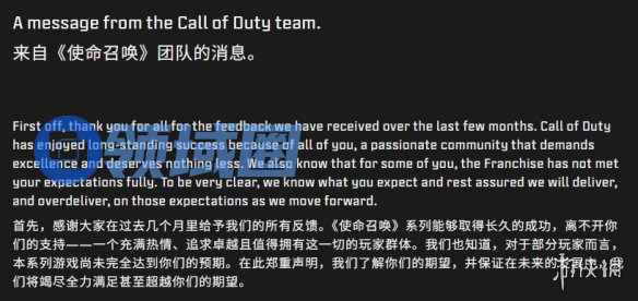 近日,《使命召唤》官方发布了对《黑色行动7》的回顾,其中包含对玩家支持的感谢,同时也对本作表现未达预期的部分进行了反思,并承诺未来将努力提升品质,力求满足乃至超越玩家的期待。