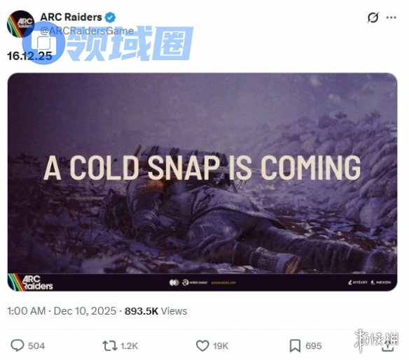 Embark Studios团队在社交媒体新帖中,确切公布了“寒潮突袭”在所有平台的发布时间。据其最近在社交平台的更新信息,该更新将于12月16日在《ARC Raiders》中正式上线。