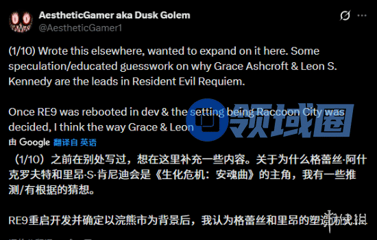 从目前所掌握的信息来看,游戏的主要人物设定为新角色格蕾丝·阿什克罗夫特,不过,里昂在剧情里具体扮演怎样的角色,尚不明确。今日,爆料人 Dusk Golem 根据自己了解到的情况做出了一些推测。值得一提的是,他正是最初爆料里昂为游戏主角的消息来源之一。