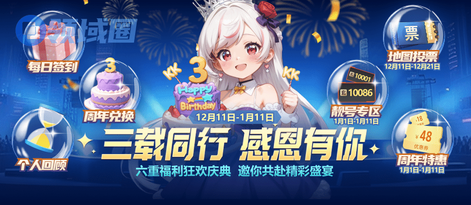 2025年12月11日至2026年1月11日,KK官方对战平台将迎来三周年庆典,为感谢广大用户一直以来的支持与陪伴,我们特别推出六大福利活动,涵盖签到、兑换、回顾、投票等多重惊喜,诚意满满,与您共同回顾成长,共享欢庆时刻!