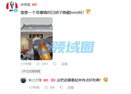 而在线上,一场充满幽默感的跨界“联动”也同步上演。在《影之刃零》的官方宣传片下方,肯德基官方账号化身“资深玩家”,留下了一条令人捧腹的评论:“需要一个带墨镜的白胡子隐藏boss吗?”并附上了一张精心制作的二创图片。