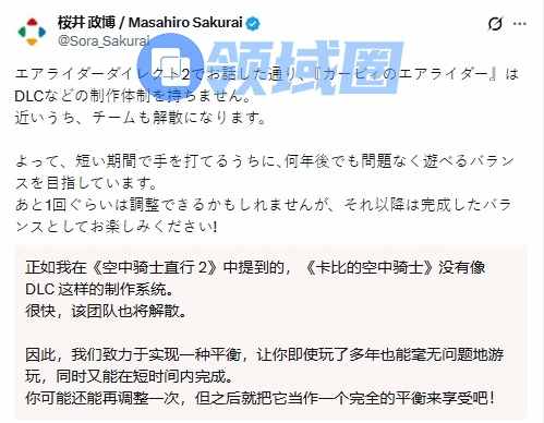 随后,游戏制作人、著名设计师樱井政博公开发文,阐明了此次更新的特殊背景与未来规划。他重申,正如先前在直面会中所预告,本作不具备制作DLC的体制,且开发团队即将解散。
