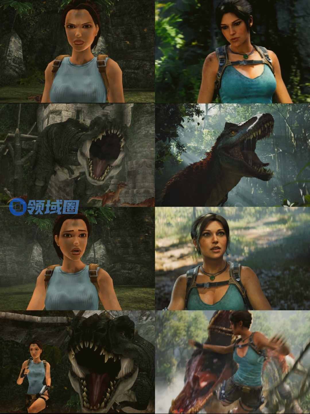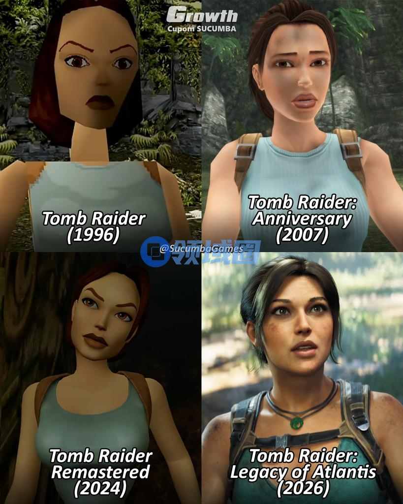 《古墓丽影》2007周年版和2026年完全重制版画面对比: