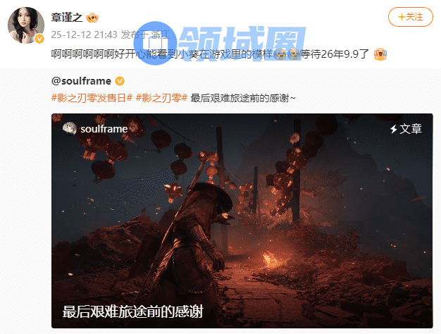 随后,演员章谨之在微博上发文回应:“啊啊啊啊!好开心能看到小葵在游戏里的模样。等待2026年9月9日了。”