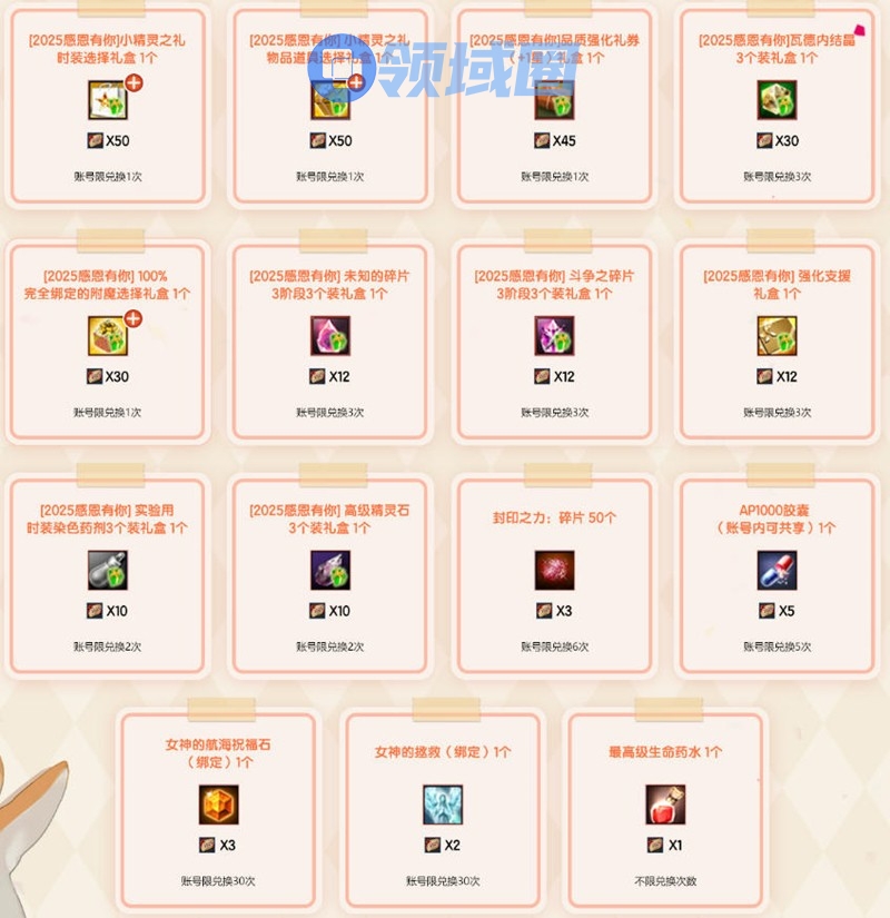 为感谢英雄们在2025年的包容与支持,在2025年12月16日维护后至2026年1月13日维护前,英雄们完成指定战役可收获“2025感恩有你礼券”,礼券可以在兑换商店兑换丰厚奖励!