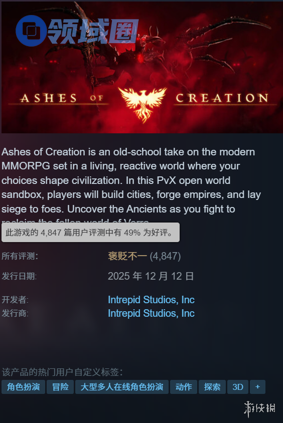当然,也有部分玩家给出了相对积极的评价,认为游戏在画面或某些玩法设计上仍有潜力。但总体而言,围绕其高昂定价、低完成度与争议性运营策略的批评声浪,已远远盖过了零星的好评。《创世灰烬》的此次“抢先体验”,非但未能点燃玩家的热情,反而可能浇灭了许多众筹支持者长期的期待。这款作品未来能否通过更新挽回声誉,仍是未知数。