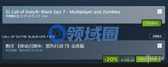 动视《使命召唤:黑色行动7》开启限时免费试玩与促销活动。免费体验涵盖多人模式与僵尸模式,Steam平台活动至12月19日凌晨2点结束,PS、Xbox及战网等平台持续至12月22日。