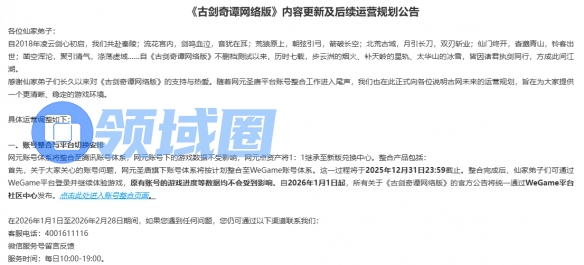公告同步公布了账号体系的整合方案。网元圣唐旗下账号将于2025年12月31日前,统一迁移至WeGame平台。整合完成后,玩家需通过WeGame登录游戏,原有数据将完整保留,游戏运营主体仍为网元圣唐。自2026年1月1日起,所有官方公告将统一通过WeGame社区发布。
