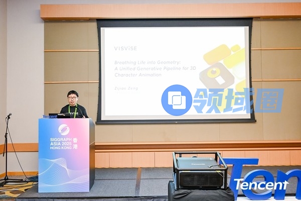 继今年8月在德国科隆游戏展(Gamescom)展示全链路解决方案后,腾讯游戏旗下VISVISE团队此次带着最新的技术成果亮相,正式发布业界首个AI全流程3D动画管线。VISVISE AI 动画负责人曾子骄以《赋予几何以生命:3D角色动画的全流程AI管线》为题发表演讲,详细介绍了核心技术的迭代情况。